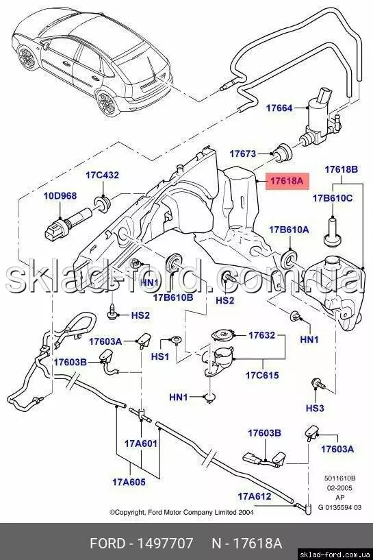 Бачек омывателя лобового стекла ( без омывателя фар ) FOCUS 2004--2011, CH 1497707