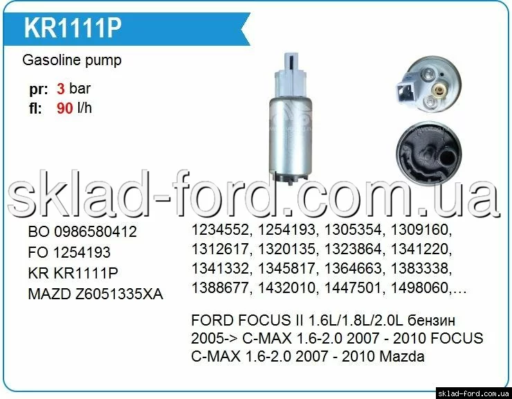 Бензонасос-вставка с клапаном MONDEO 2000- DURATEC HE,FOCUS 2004--, KR1111P