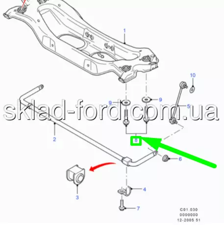 Болт M12x90 крепления заднего подрамника MONDEO 2000--2007, 1214491