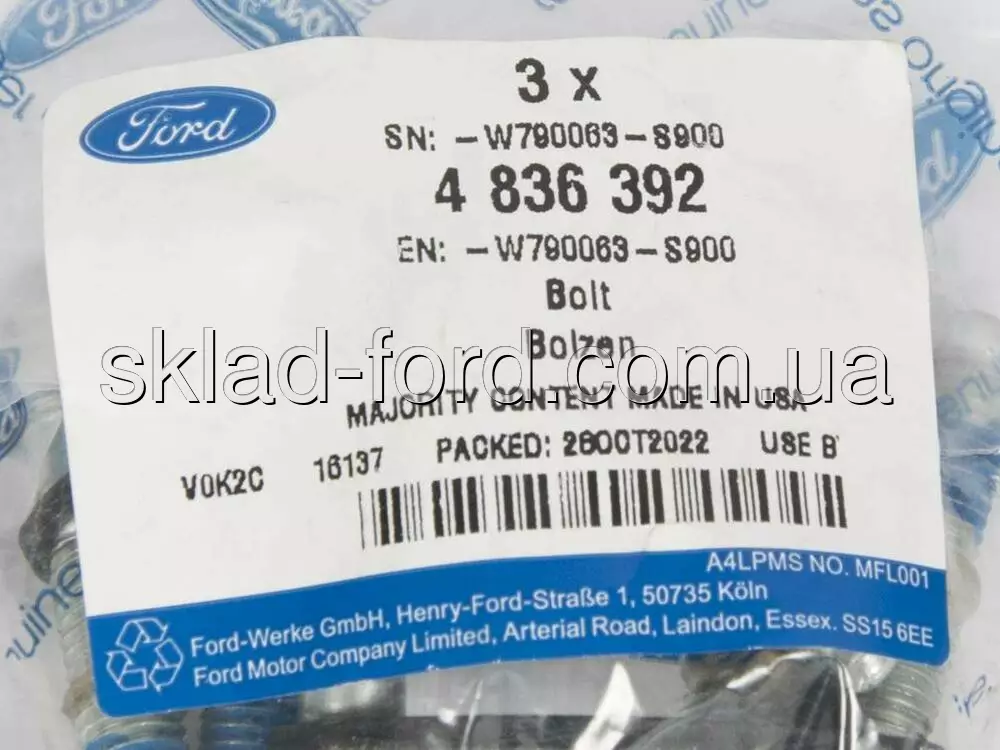 Болт M8x1.25x40 крепления карданного вала EDGE,EXPLORER,FLEX,FUSION,TAURUS 2010--, 4836392