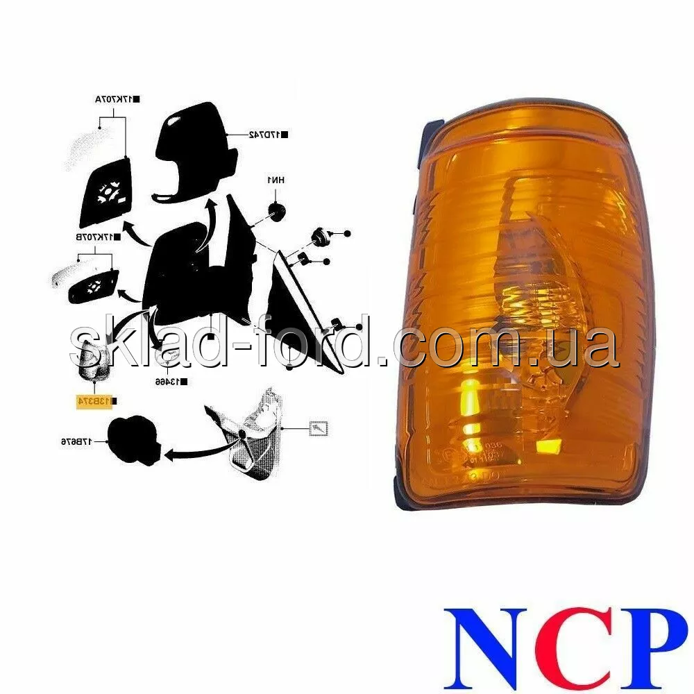 Желтый повторитель правого зеркала TRANSIT 2014--09/2015 длинные серии, HMP BK3113B382BB