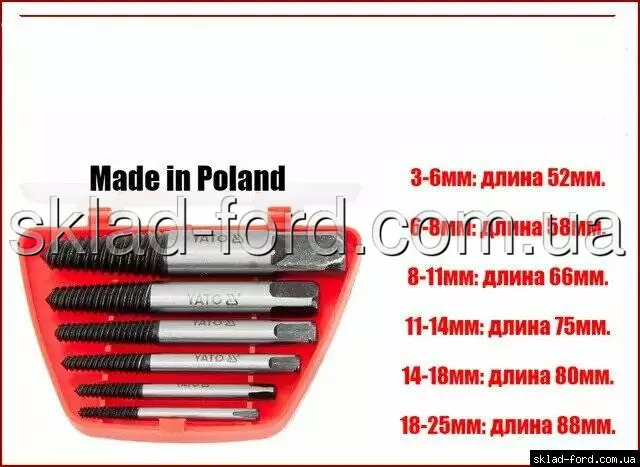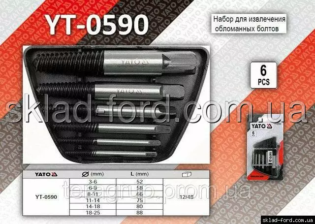 Экстрактор обломаных болтов, YT-0590