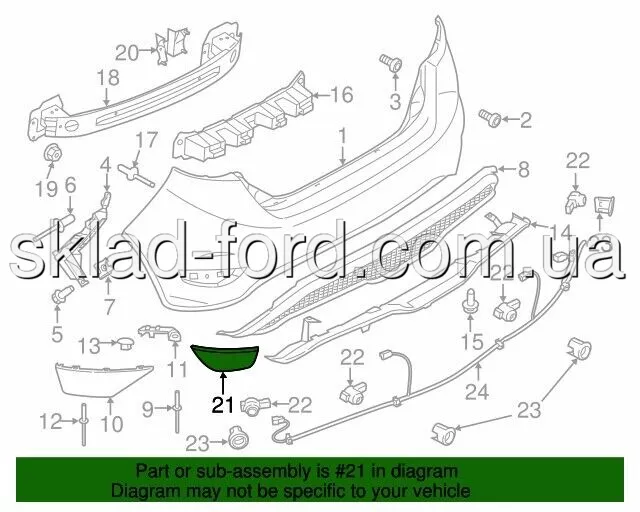 Левый катафот заднего бампера FIESTA USA хетчбек 2010--2019, BE8Z15A449AA