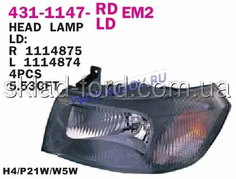 Фара передняя левая черная отделка TRANSIT 2000-2006, 431-1147L-LDEM2