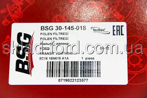 Фильтр салона пылевой TRANSIT 2007- (200x215x25), 30-145-018