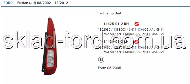 Фонарь задний левый FUSION 2005--2012, 11-14426-01-2
