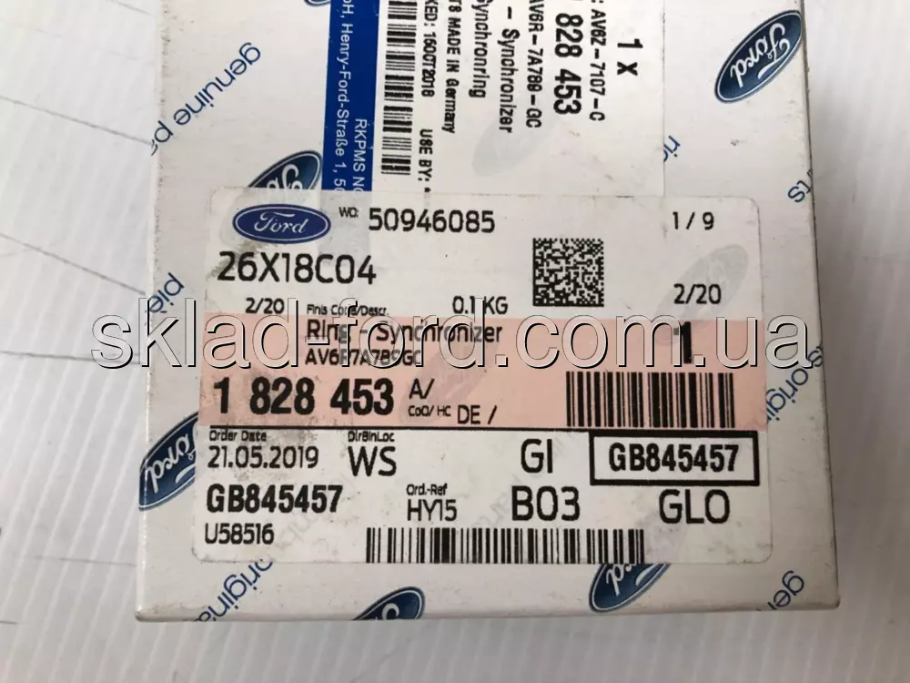 Кольцо синхронизатора 1й-2й передачи КПП B6, FIESTA,FOCUS,C-MAX,KUGA,MONDEO 2011---, 1828453