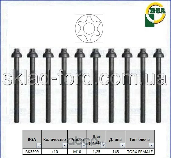 Комплект болтов головки блока DURATEC-HE, BK3309