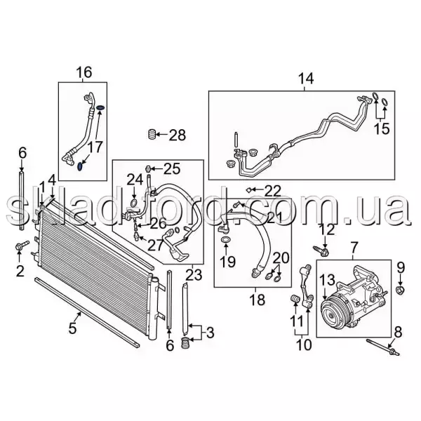 Комплект 6шт. колец трубок кондиционера ESCAPE,KUGA,ECOSPORT,MUSTANG 2013--- ( 3/4", 1/2", 5/8", 3/8" ), HL3Z19B596A