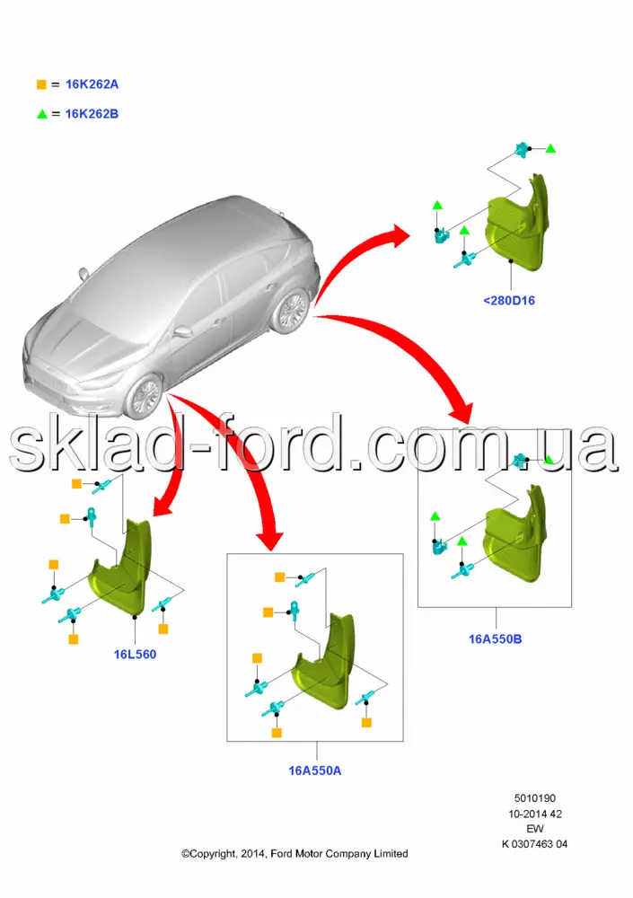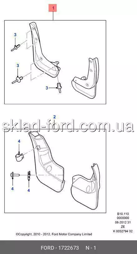 Комплект передних брызговиков FOCUS 2011--2015--, CH 1722673