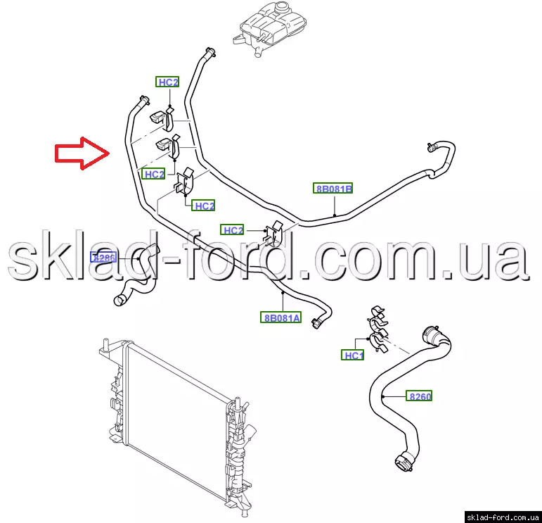Патрубок системы охлаждения от радиатора к расширительному бачку C-MAX,FOCUS 2003--2008 DURATEC-HE, 1386837