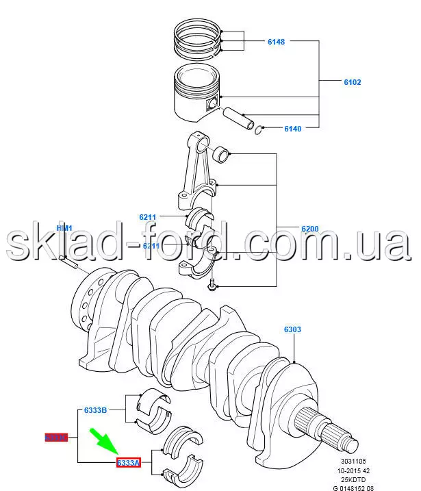 Комплект упорных коренных вкладышей MONDEO,KUGA,VOLVO 2.5 DURATEC VCT TURBO 2005--2014, 1579364