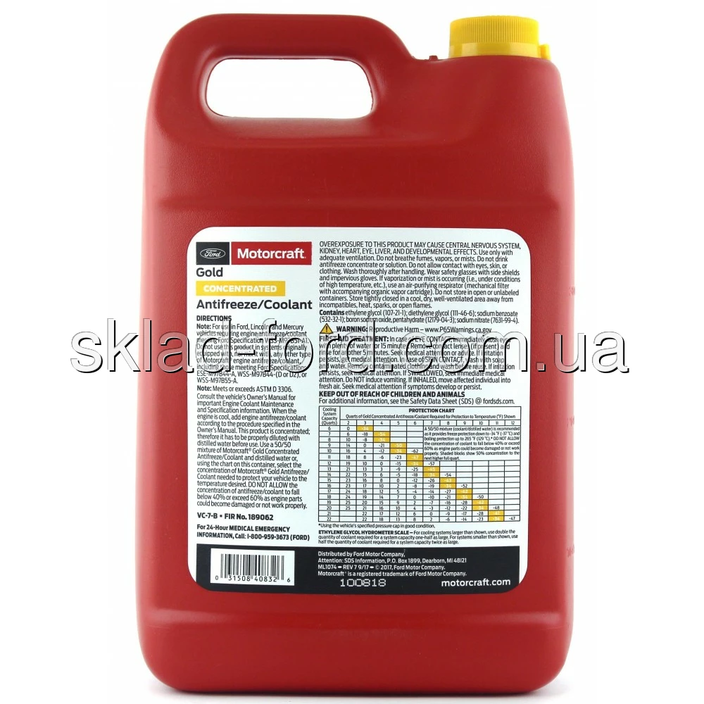 Концентрат золотистый антифриза 3,785л ( Ford Motorcraft Gold Concentrated Antifreeze ), VC7B