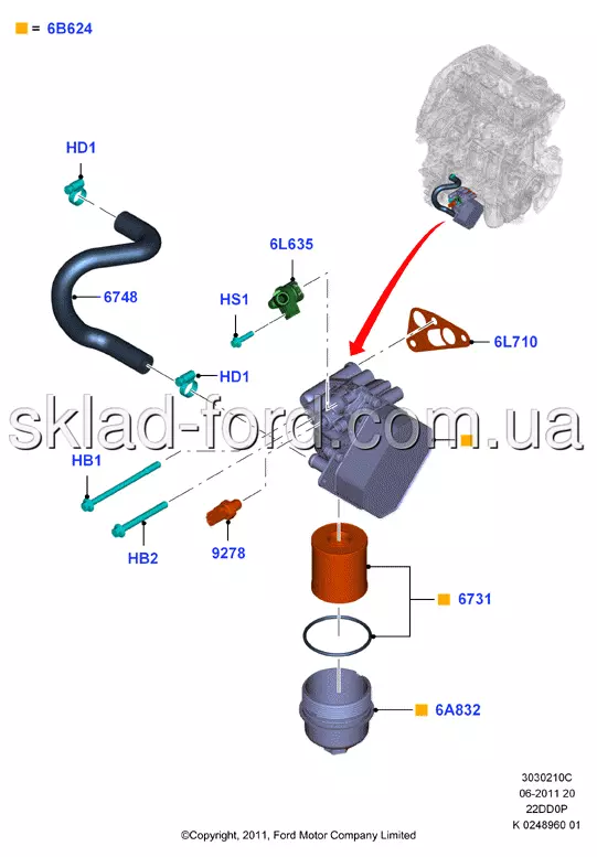 Корпус масляного фильтра TRANSIT 2.2TD 2006-- ( Под вставку фильтр !!! ), CH 1829179