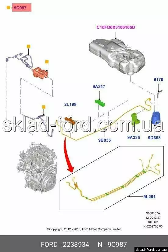 Клапан паров топлива с трубками FIESTA,B-MAX,COURIER 1.0 ECOBOOST 2012--,CH 2238934