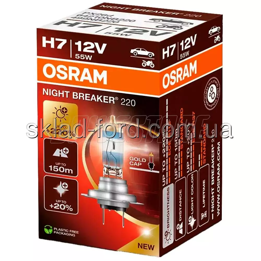 Лампа H7 NIGHT BREAKER 200, +220% света,+150% дальность,белее свет на 20% ( Золотой колпачек ), 64210NB220-FS