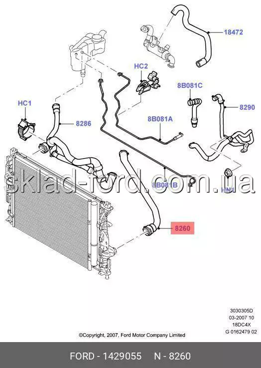 Левый нижний патрубок радиатора MONDEO 1.8TD 2007--2010, 1429055