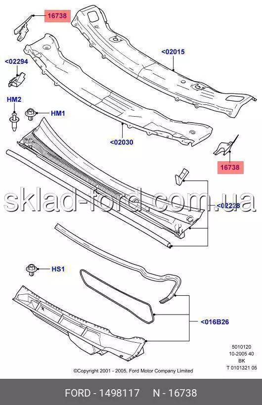 Левый уголок воздухозаборной решетки FIESTA 2001--2008, CH 1498117