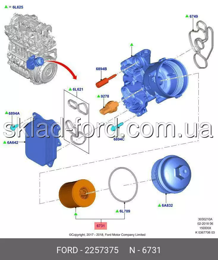 Масляный фильтр ECOSPORT,FOCUS,KUGA,CONNECT 1.5TD 2018---, 2257375