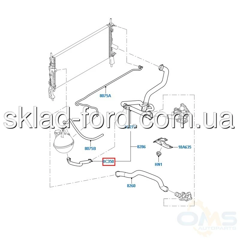 Нижний патрубок расширительного бачка TRANSIT 2.2TD,2.4TD 2006--2008, CH 1384597