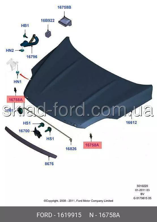 Ограничитель капота KUGA 09/2008--11/2012, 1619915