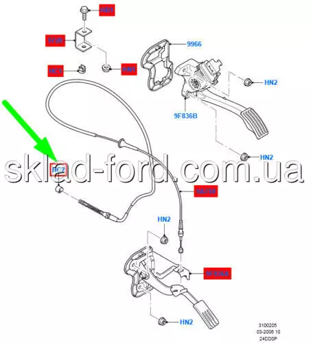 Зажим тросика газа TRANSIT 1994---, 6755139