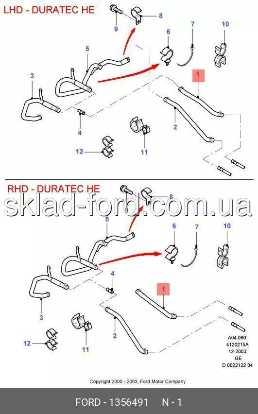 Патрубок впускной печки MONDEO 2000-2007 DURATEC-HE, 1356491