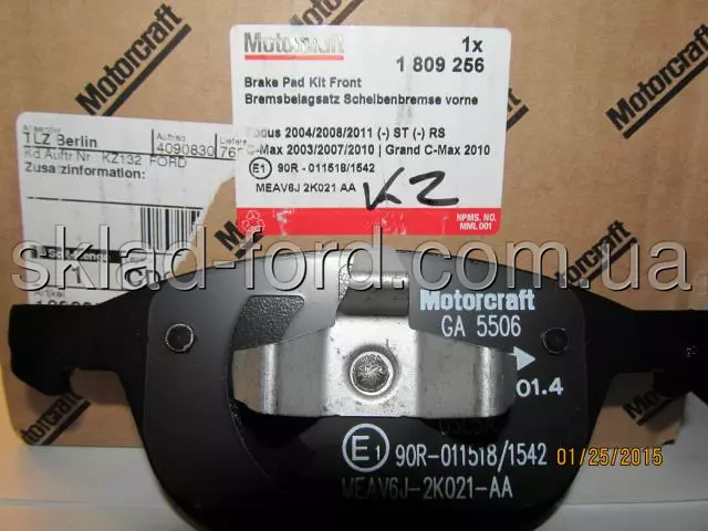 Передние тормозные колодки MOTORCRAFT FOCUS NEW,C-MAX,KUGA, 1809256