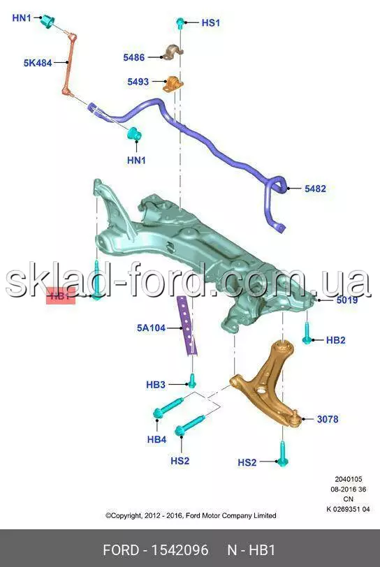 Передний болт M10x90 переднего подрамника FIESTA,B-MAX,ECOSPORT,KA,COURIER 2008---, 1542096