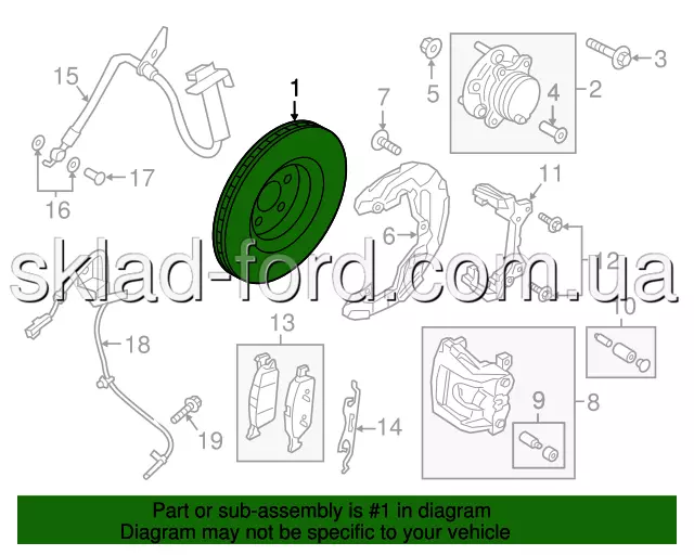 Передний тормозной диск 344мм EDGE, LINCOLN 2015--, 18