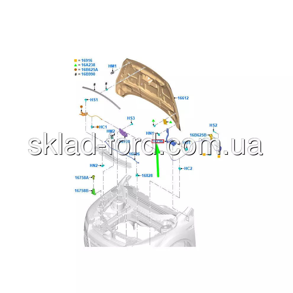 Правая петля капота FOCUS 2011--, KUGA, ESCAPE 2013--, FD078-228A-R