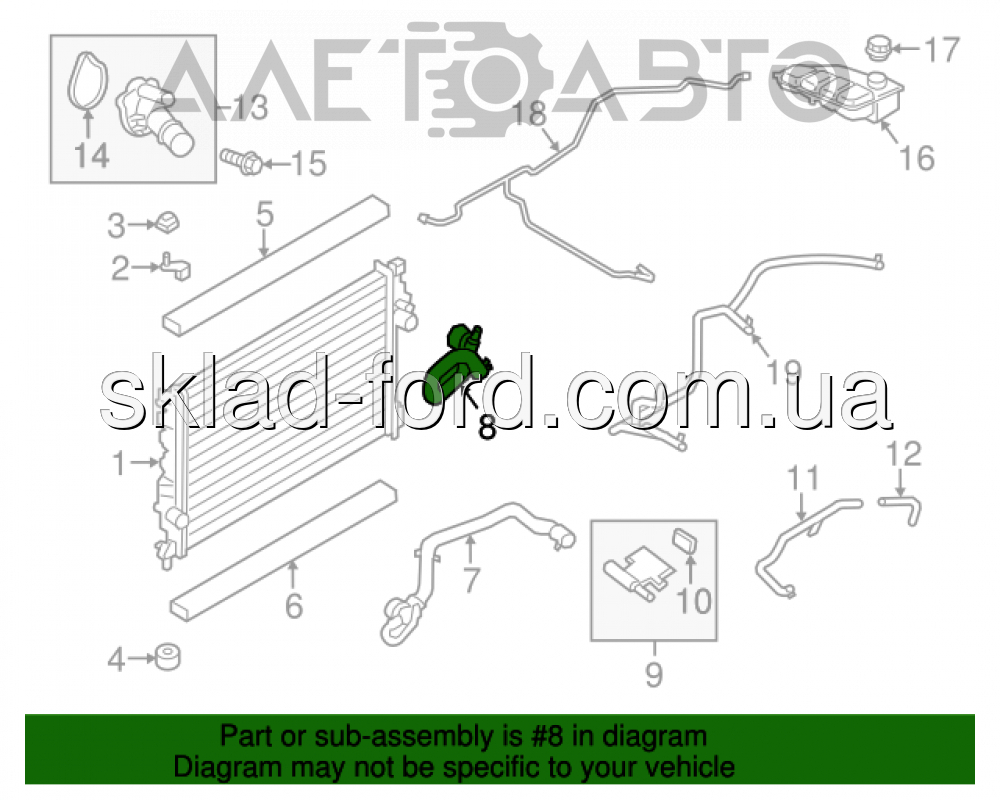 Правый патрубок радиатора ESCAPE 2012--2016 2.5 DURATEC, CV6Z8286M
