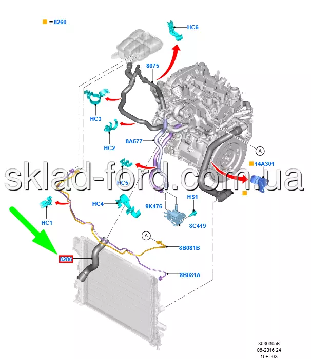 Правый патрубок радиатора1.0 ECOBOOST, 1844733