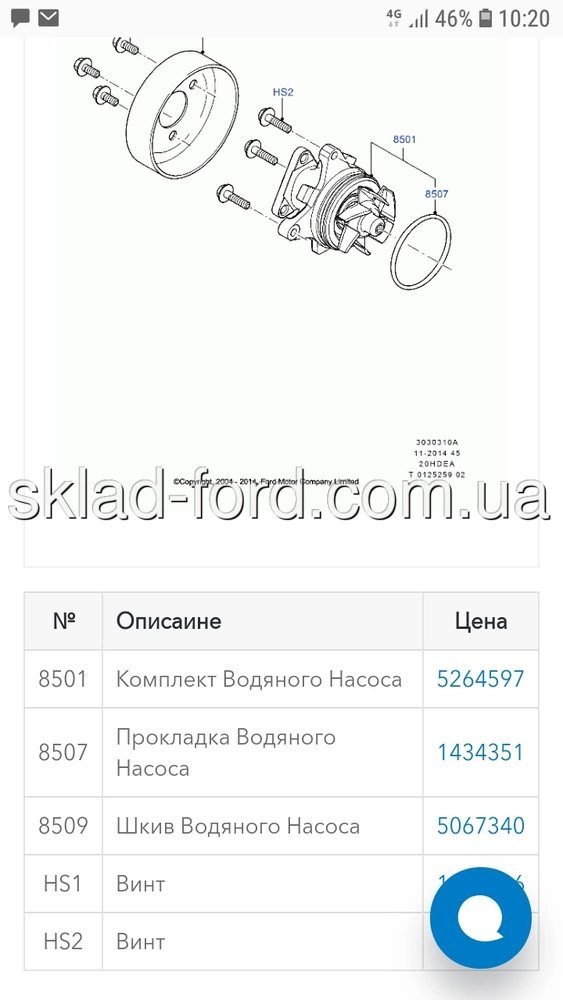 Прокладка водяной помпы DURATEC HE, 2.0 ECOBOOST, MONDEO 2000-,FOCUS,C-MAX 2004-,FUSION 2013--, 1434351