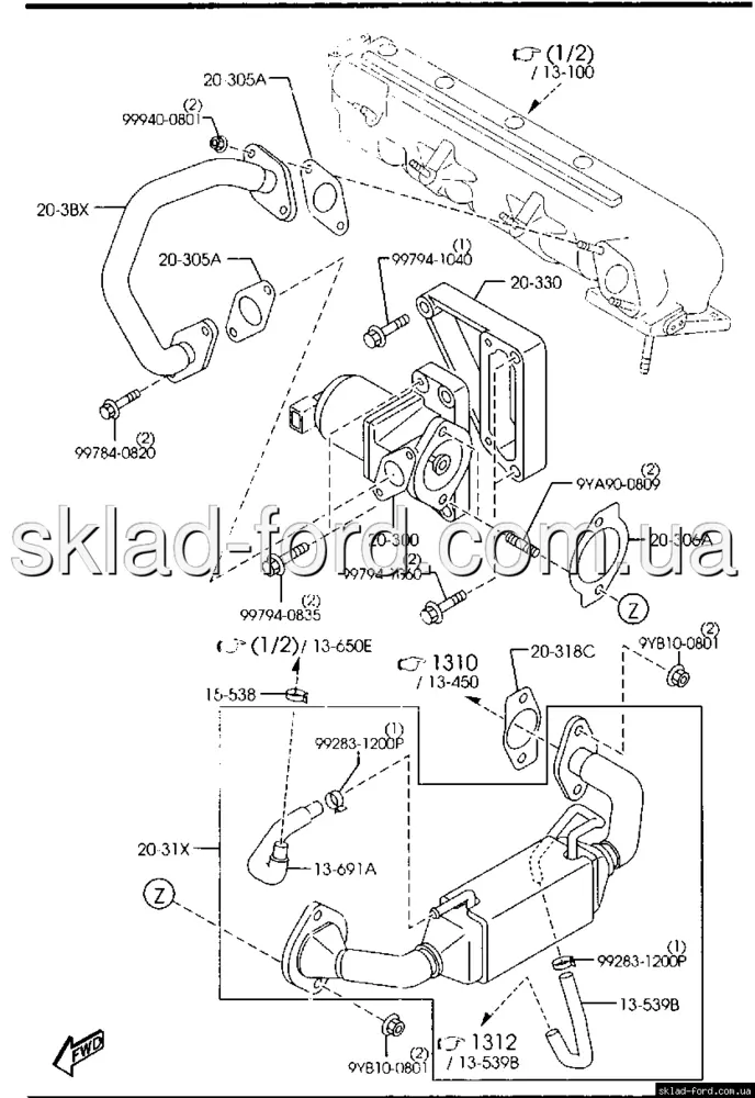 Прокладка клапана EGR MAZDA 2.0TD 2005--2010, RF7J-20-306