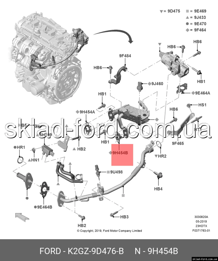 Прокладка охладителя клапана EGR EDGE,ECOSPORT 2019--2025, K2GZ9D476B