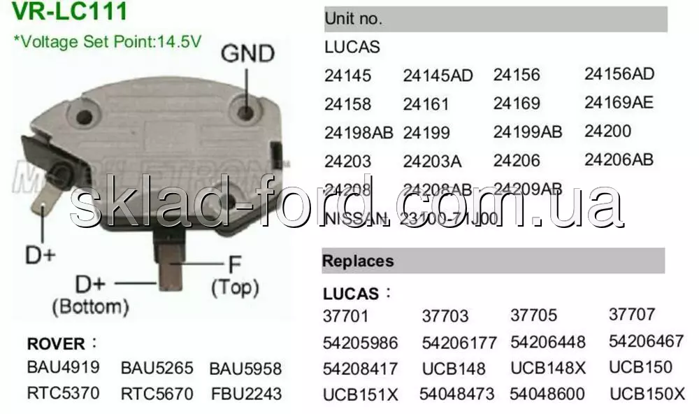 Реле генератора тип LUCAS TRANSIT 2.5 Д 1986-2000, SPC-ALP01