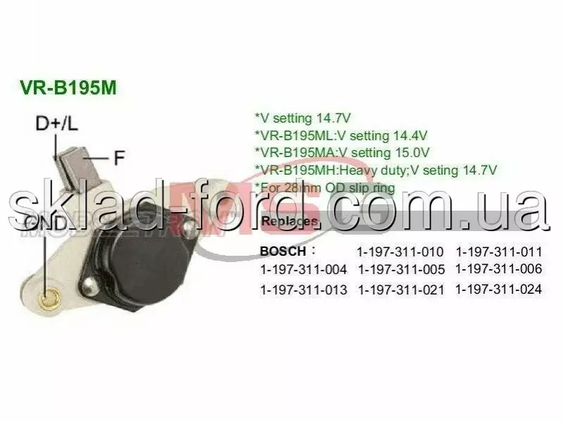 Реле регулятор напряжения генератора BOSCH 1.6D, 2.0 DOHC, VRB195M