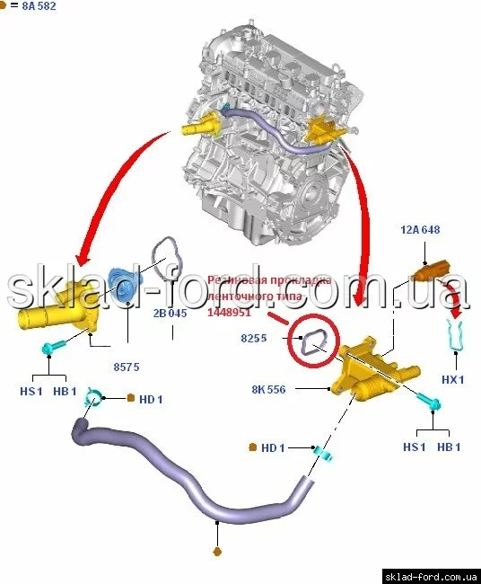 Резиновая прокладка водяного адаптера DURATEC-HE 2004--05/2011, 1448951