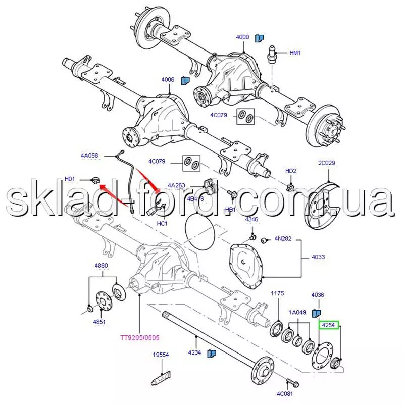 RH гайка заднего моста TRANSIT 2007-- ( синяя ), 4875826