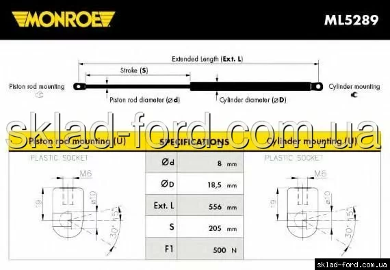 Газовый упор крышки багажника FOCUS 2004--2008 5дв хетчбек, AG-40066