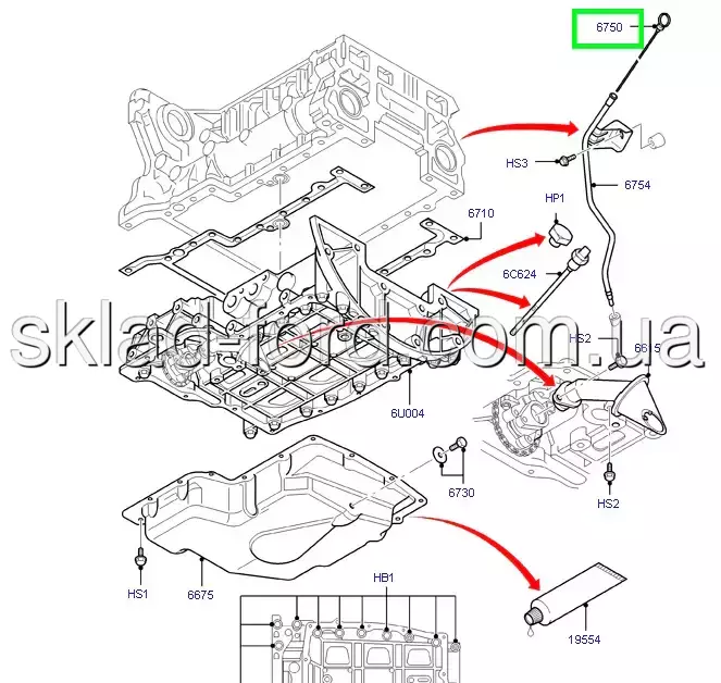 Щуп уровня масла TRANSIT 2.4TD 2006--2014, 6C1Q6750BC