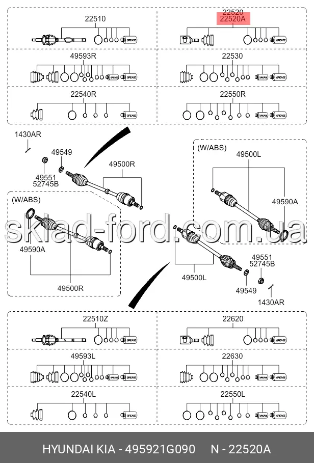 Шрус внутренний правый с пыльником Kia Rio 2006-2007, 49592-1G090