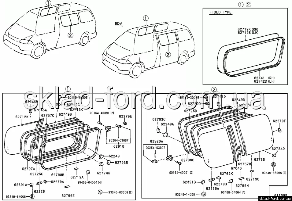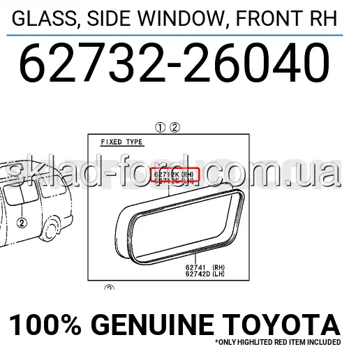 Стекло раздвижное боковой сдвижной двери HIACE 2000-- , 62732-26130