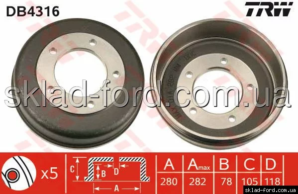 Тормозной барабан Форд Транзит 2000-2006 RWD без спарки,, BS 2304