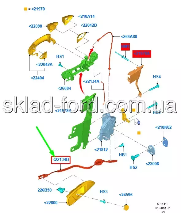 Трос внутренней ручки передней двери FIESTA 2008--2013--, 1677505