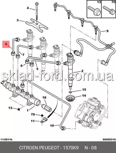 Трубка от топливного коллектора к форсунке 1го цилиндра TRANSIT 2.2TD, 2006--2014, 1570.K9