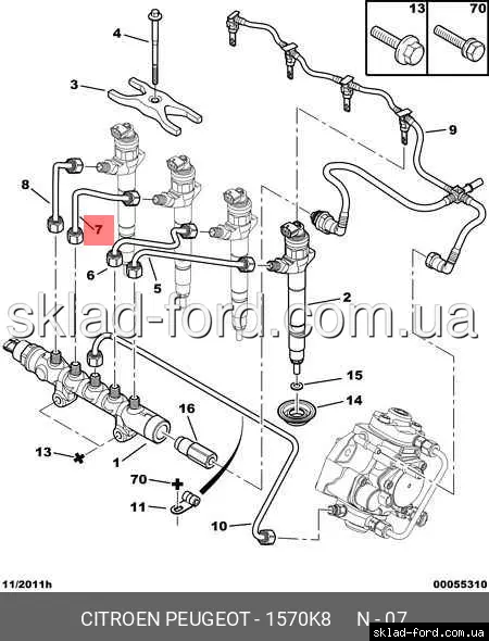 Трубка от топливного коллектора к форсунке 2го цилиндра TRANSIT 2.2TD, 2006--2014, 1570.K8