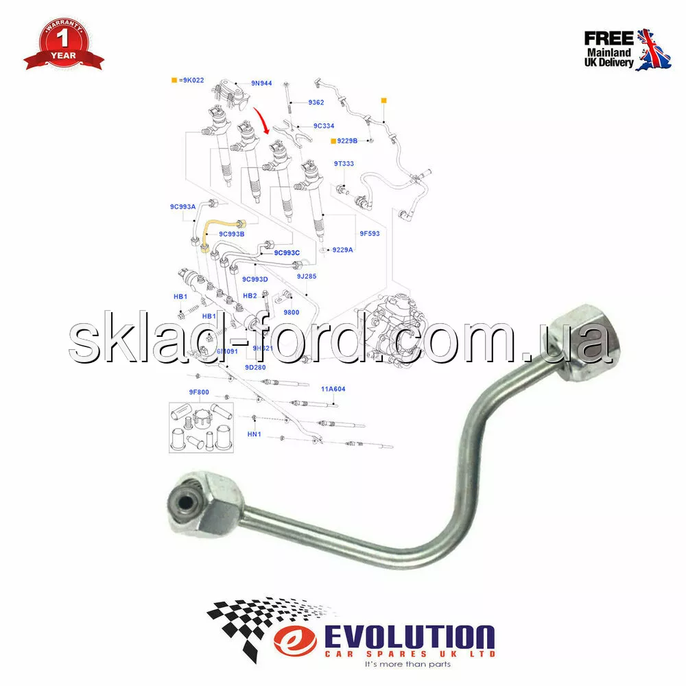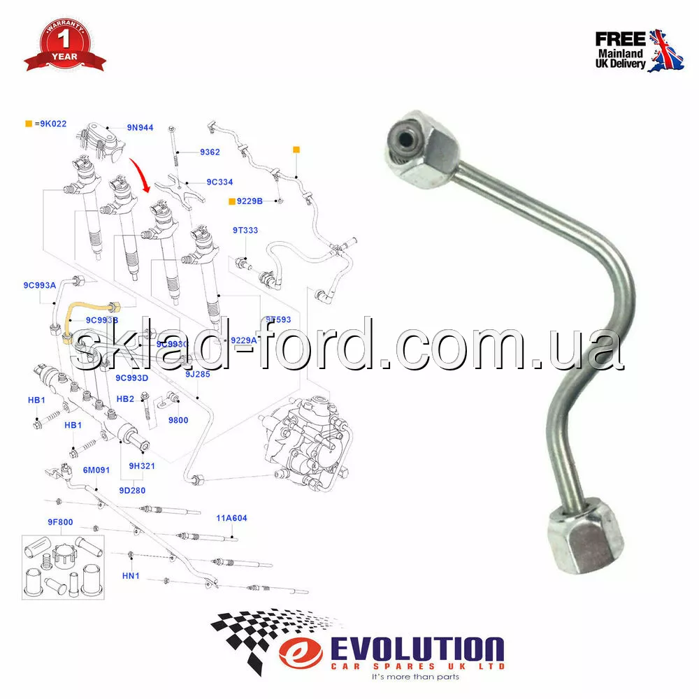 Трубка от топливного коллектора к форсунке 2го цилиндра TRANSIT 2.2TD, 2006--2014, CH 1372351
