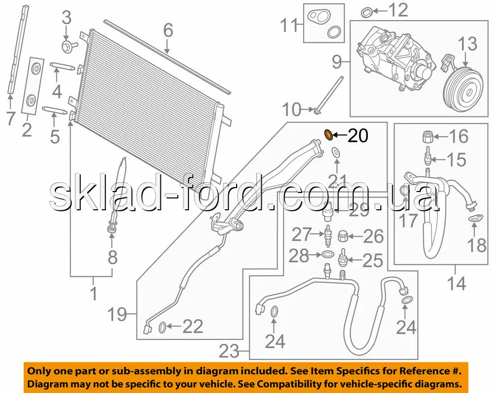 Уплотнительное кольцо трубки кондиционера FOCUS,FIESTA,EDGE,CONNECT ( 25.26 x 2.13 x 17.18 ), 6E5Z19E889D